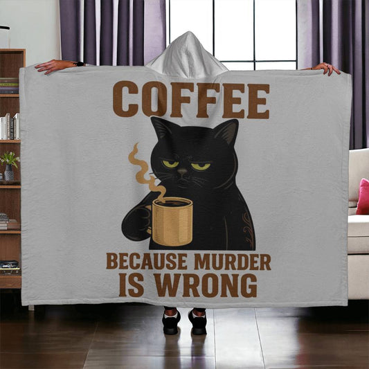 Funny Cat Coffee Hooded Sherpa Fleece Blanket